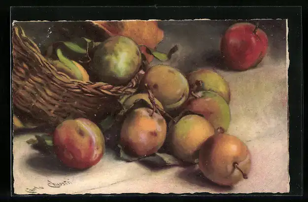 Künstler-AK Carlo Chiostri: Stilleben mit Pfirsichen