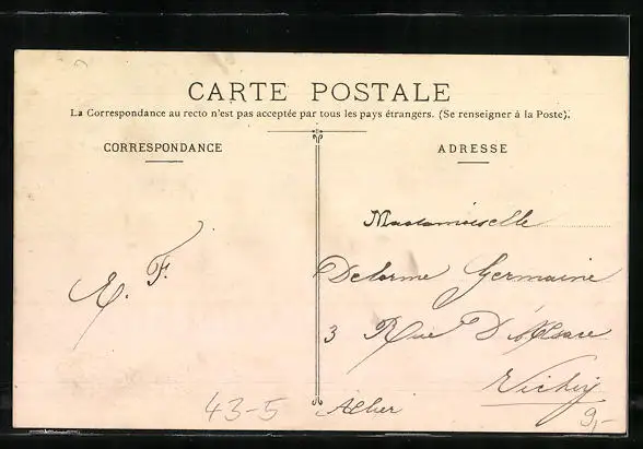 Personenbezogene Daten auf der Rückseite der Karte wurden durch blauen Textmarker unkenntlich gemacht. Die blauen Stellen sind auf die Vorderseite durchgeweicht und wirken sich negativ auf das Postkartenfoto aus