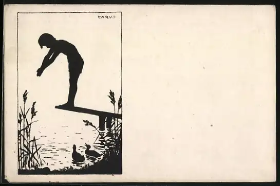 Künstler-AK Carus: Junge vor dem Sprung in einen See