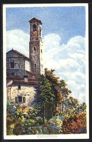 Künstler-AK Castagnola, Ortsansicht mit Turm