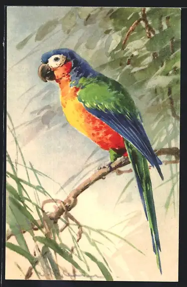 Künstler-AK Catharina Klein: Ein Papagei sitzt auf einem Ast