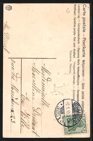 alte Ansichtskarte, gelaufen 1910, Stempelspur, guter Zustand