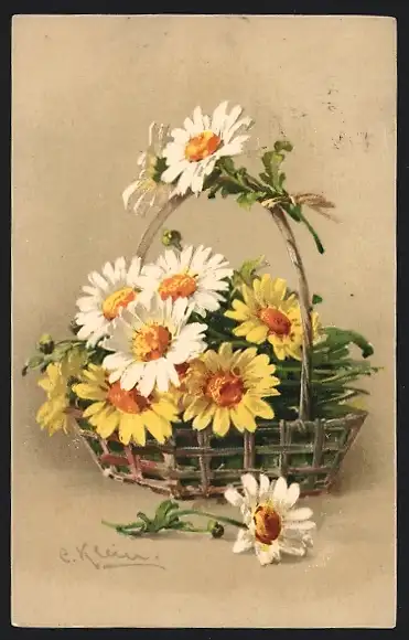 Künstler-AK Catharina Klein: Margeriten im Korb
