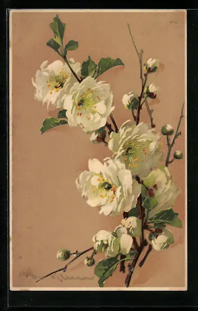 Künstler-AK Catharina Klein: Obstblüten an Zweigen