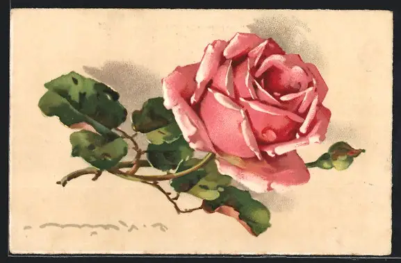 Künstler-AK Catharina Klein: Rosafarbene Rose mit Knospe