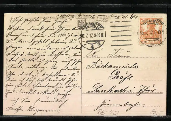 alte Ansichtskarte, gelaufen 1917, guter Zustand