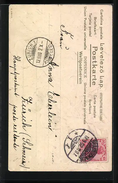 alte Ansichtskarte, gelaufen 1902, guter Zustand