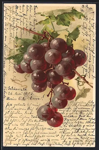 Künstler-AK Catharina Klein: Rote Weintrauben an der Rebe