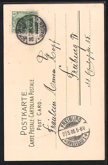 alte Ansichtskarte, gelaufen 1905, Bugspur unten, guter Zustand