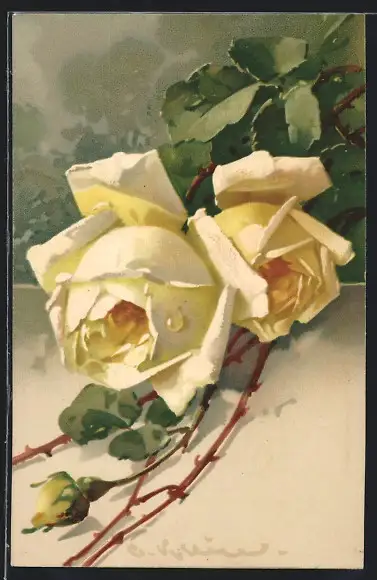 Künstler-AK Catharina Klein: Zwei blühende Rosen