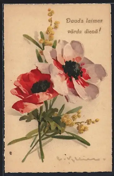 Künstler-AK Catharina Klein: zwei Mohnblumen