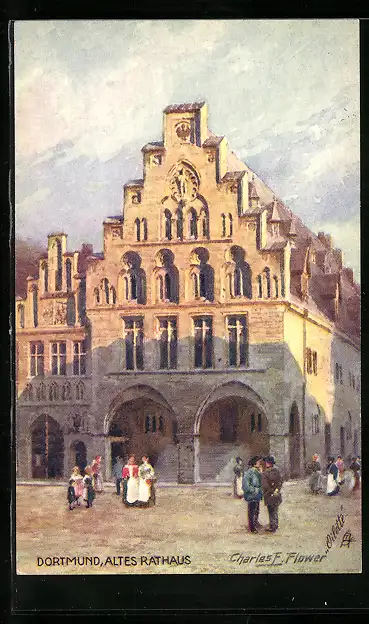 Künstler-AK Charles F. Flower: Dortmund, Partie am alten Rathaus