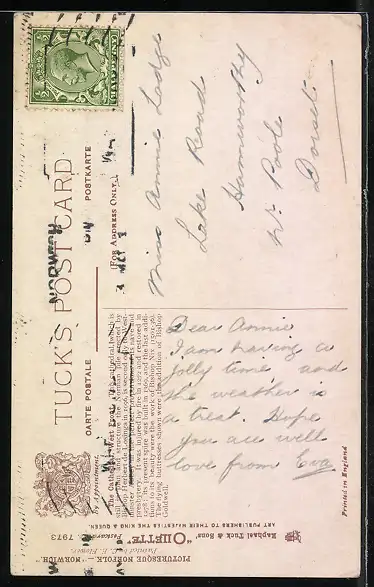alte Ansichtskarte, gelaufen, Eckknicke li., Abriebspur li. unten, guter Zustand