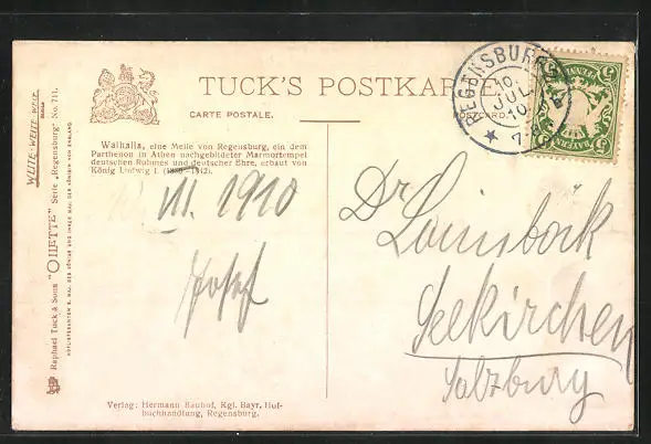 alte Ansichtskarte, gelaufen 1910, guter Zustand