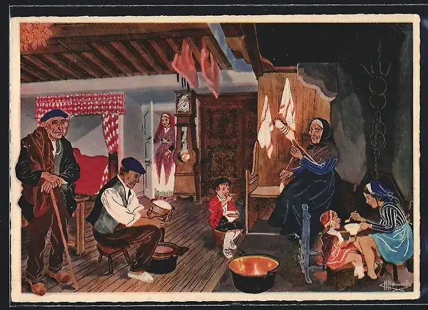 Künstler-AK Charles Homualk: Ossalois fabriquant le Fromage de Brebis