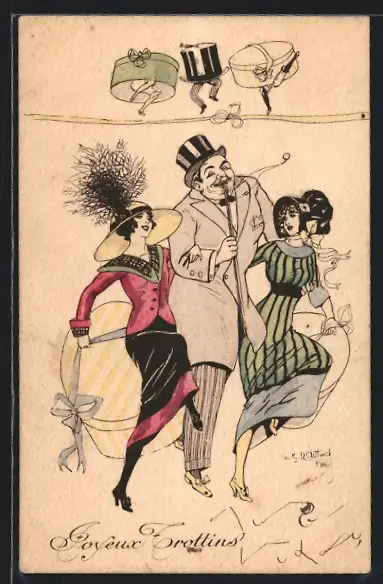 Künstler-AK Charles Naillod: Joyeux Crottins, Tanzende Gesellschaft
