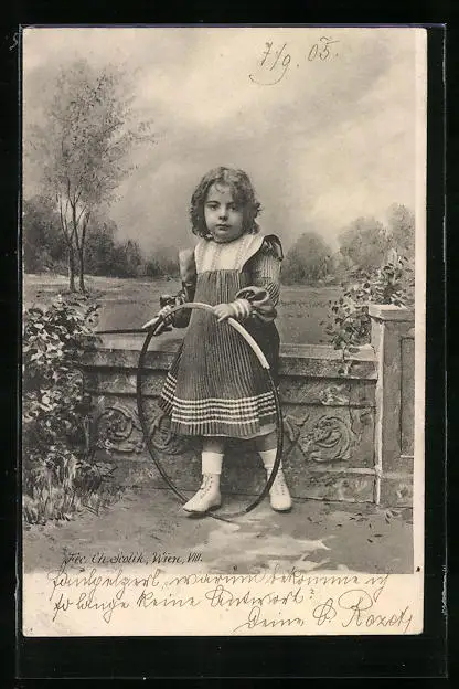 Künstler-AK Charles Scolik: Kleines Mädchen mit einem Hula-Hoop-Reifen