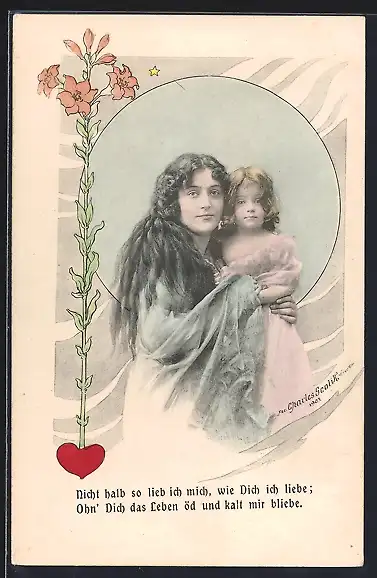 Künstler-AK Charles Scolik: Mutter hält ihre Tochter im Arm