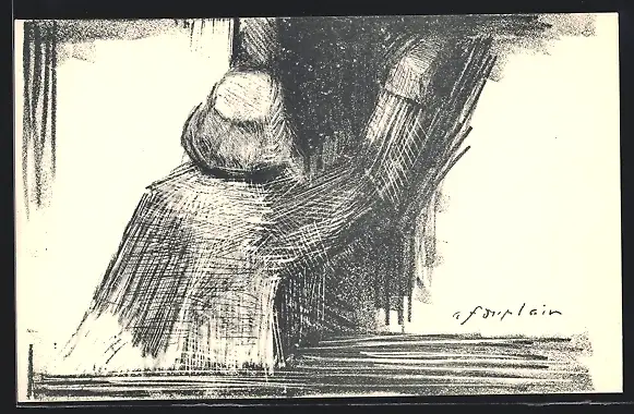 Künstler-AK Chaux-de-Fonds, Student schreibt an eine Tafel