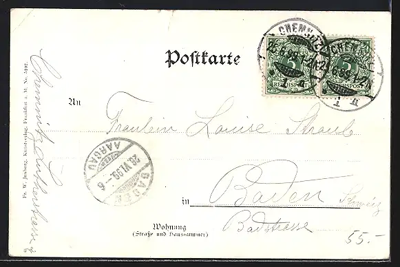 alte Ansichtskarte, gelaufen 1899, Eckknick re. oben, minimaler Einriss oben mittig, guter Zustand