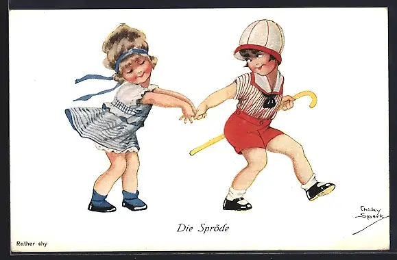 Künstler-AK Chicky Spark: Die Spröde, Mädchen beim Spiel