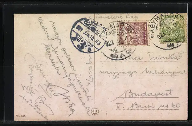 gelaufen 1921, Eckknick re. oben, Bugspur unten li., guter Zustand