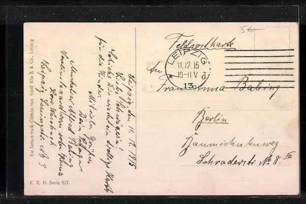 alte Ansichtskarte, gelaufen als Feldpost 1915, guter Zustand