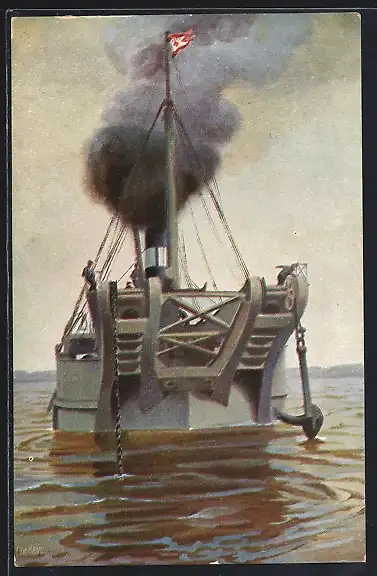Künstler-AK Christopher Rave: Bergungsschiff Unterelbe