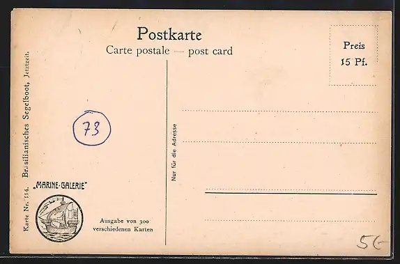 Personenbezogene Daten auf der Rückseite der Karte wurden durch blauen Textmarker unkenntlich gemacht. Die blauen Stellen sind auf die Vorderseite durchgeweicht und wirken sich negativ auf das Postkartenfoto aus