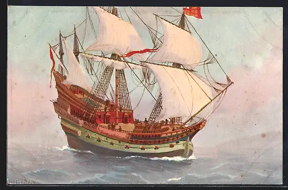 Künstler-AK Christopher Rave: Englisches Kriegsschiff, 16. Jh.