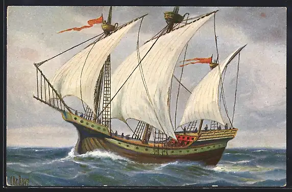 Künstler-AK Christopher Rave: Holländische Kogge um 1450