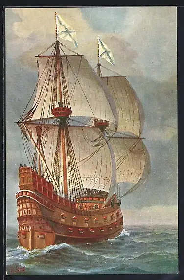 Künstler-AK Christopher Rave: Russisches Kriegsschiff, 16. Jahrh.