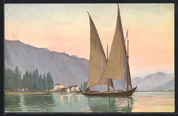 Künstler-AK Christopher Rave: Segelboot auf dem Genfer See, Jetztzeit