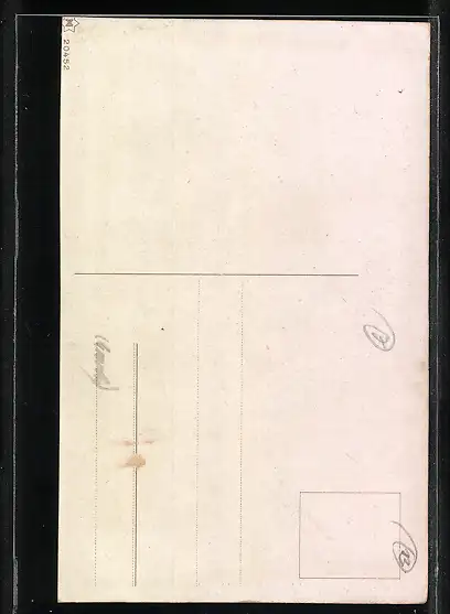Personenbezogene Daten auf der Rückseite der Karte wurden durch blauen Textmarker unkenntlich gemacht. Die blauen Stellen sind auf die Vorderseite durchgeweicht und wirken sich negativ auf das Postkartenfoto aus
