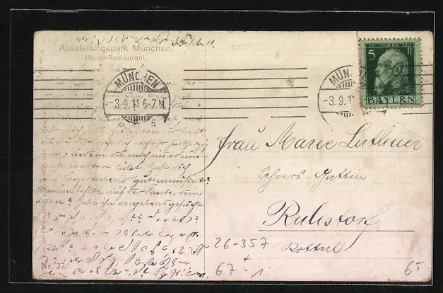 alte Ansichtskarte, gelaufen 1911, Bugspuren im linken oberen Eckbereich, Stempelspur, guter Zustand