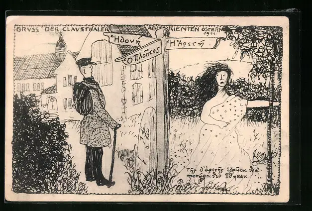 Künstler-AK Clausthal, Gruss der Clausthaler Abiturienten Ostern 1911
