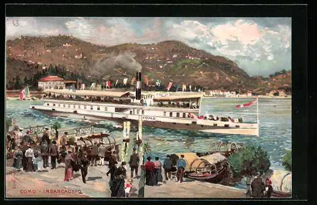 Künstler-AK Como, Imbarcadero, Dampfer Como
