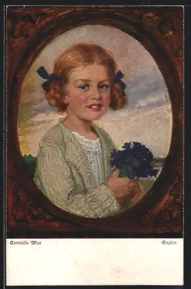 Künstler-AK Corneille Max: Mädchen in Strickjacke mit Enzian