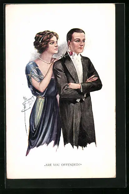 Künstler-AK Court Barber: Are you offended?, Paar in Abendgarderobe