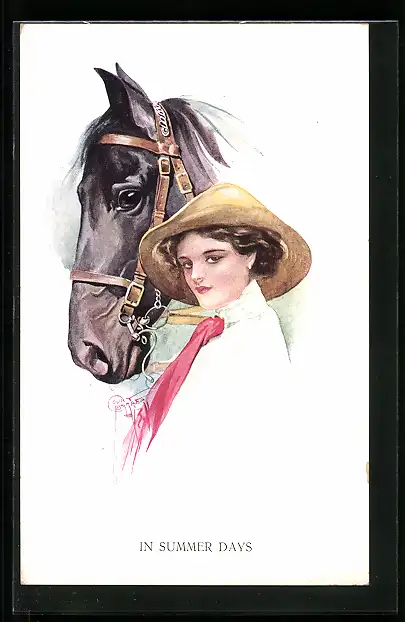 Künstler-AK Court Barber: In Summer Days, hübsche Reiterin mit ihrem Pferd