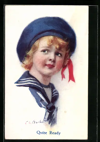 Künstler-AK Court Barber: Quiet Ready, Allzeit bereit, Portrait eines Jungen in Matrosenanzug