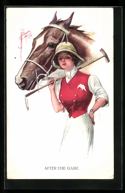 Künstler-AK Court Barber: Reiterin mit ihrem Pferd