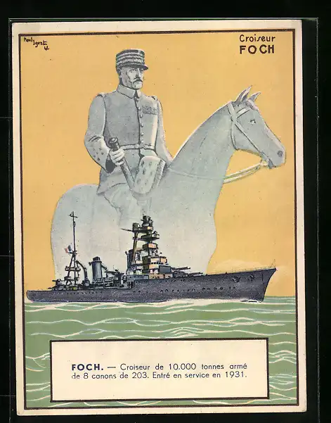 Künstler-AK Croiseur Foch, Kriegsschiff