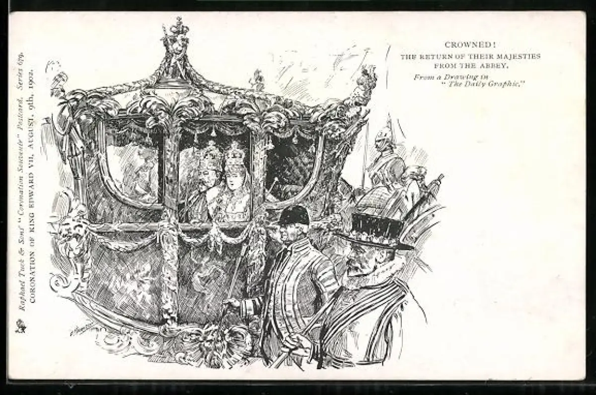 Künstler-AK Crowned! The return of Their Majesties from the abbey