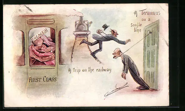 Künstler-AK Cynicus: A trip on the railway, A Terminus on a lingle line