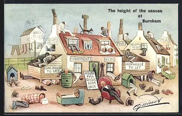 Künstler-AK Cynicus: Burnham, The Height of the Season, House Full, Standing Room Only