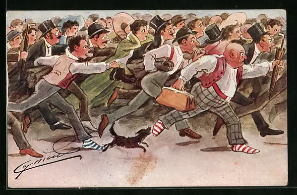 Künstler-AK Cynicus: Lauter Passanten in Eile