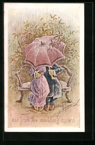 Künstler-AK Cynicus: Paar sitzt unter einem Regenschirm auf einer Parkbank