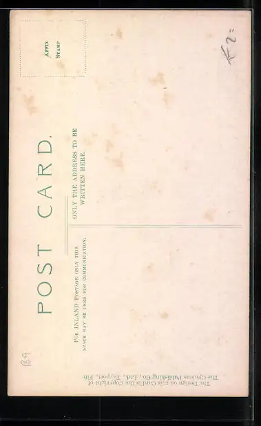 Personenbezogene Daten auf der Rückseite der Karte wurden durch blauen Textmarker unkenntlich gemacht. Die blauen Stellen sind auf die Vorderseite durchgeweicht und wirken sich negativ auf das Postkartenfoto aus