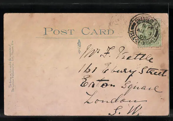 alte Ansichtskarte, gelaufen 1908, Eckknicke, guter Zustand